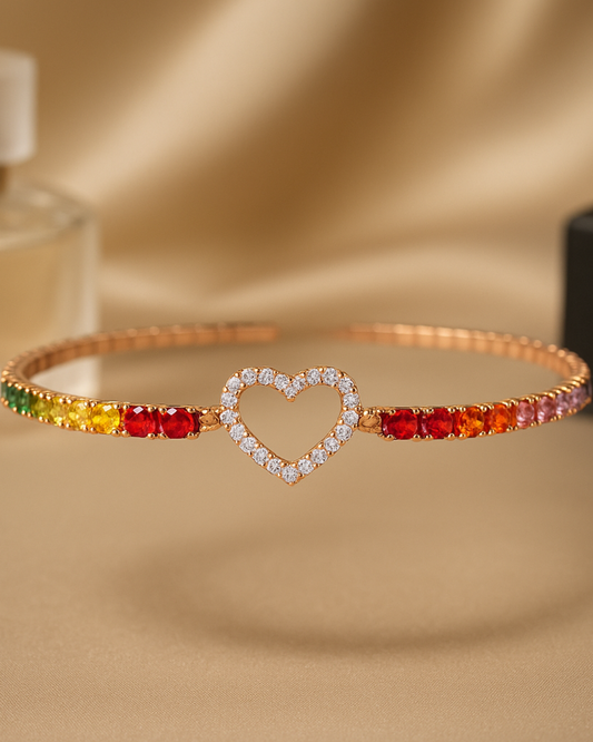 Radiant Spectrum Heart Tennis Bracelet Sterling Silver
