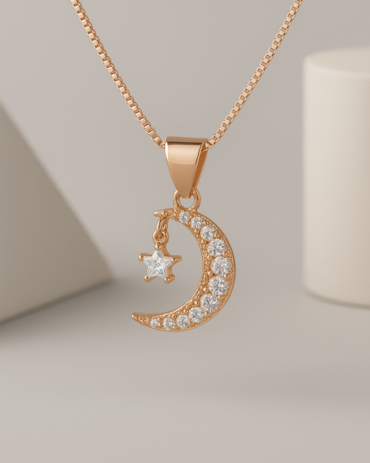 Celestial Charm Moon & Star Necklace Sterling Silver