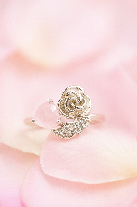 Eternal Rosé Heart Bow Ring - Sterling Silver