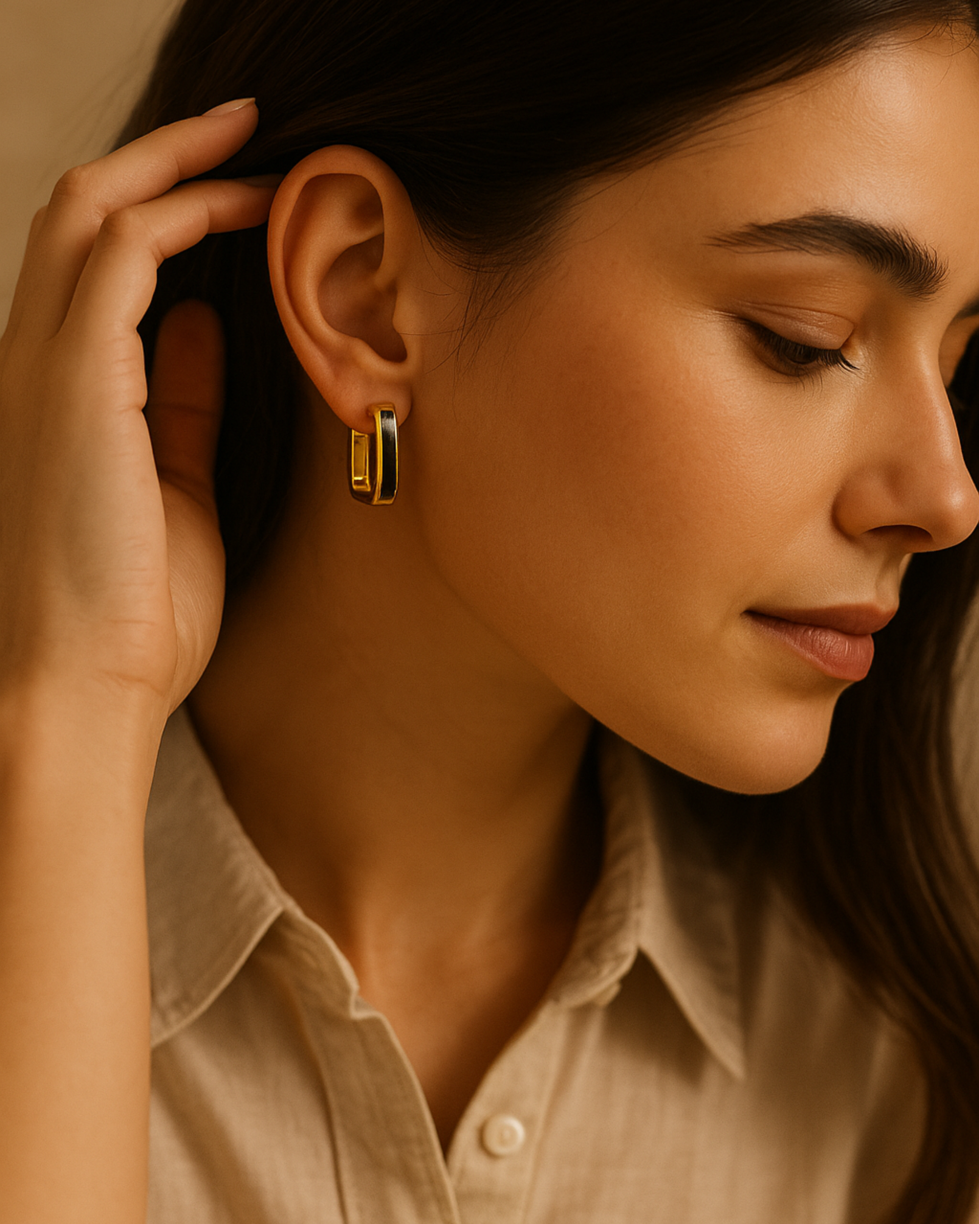Minimal design. Maximum impact. Aureum Noir Sterling Silver Hoops feature a structured silhouette in gold/rose gold finished 925 Sterling Silver, highlighted with a smooth black enamel accent. A versatile piece that transitions seamlessly from day to night.