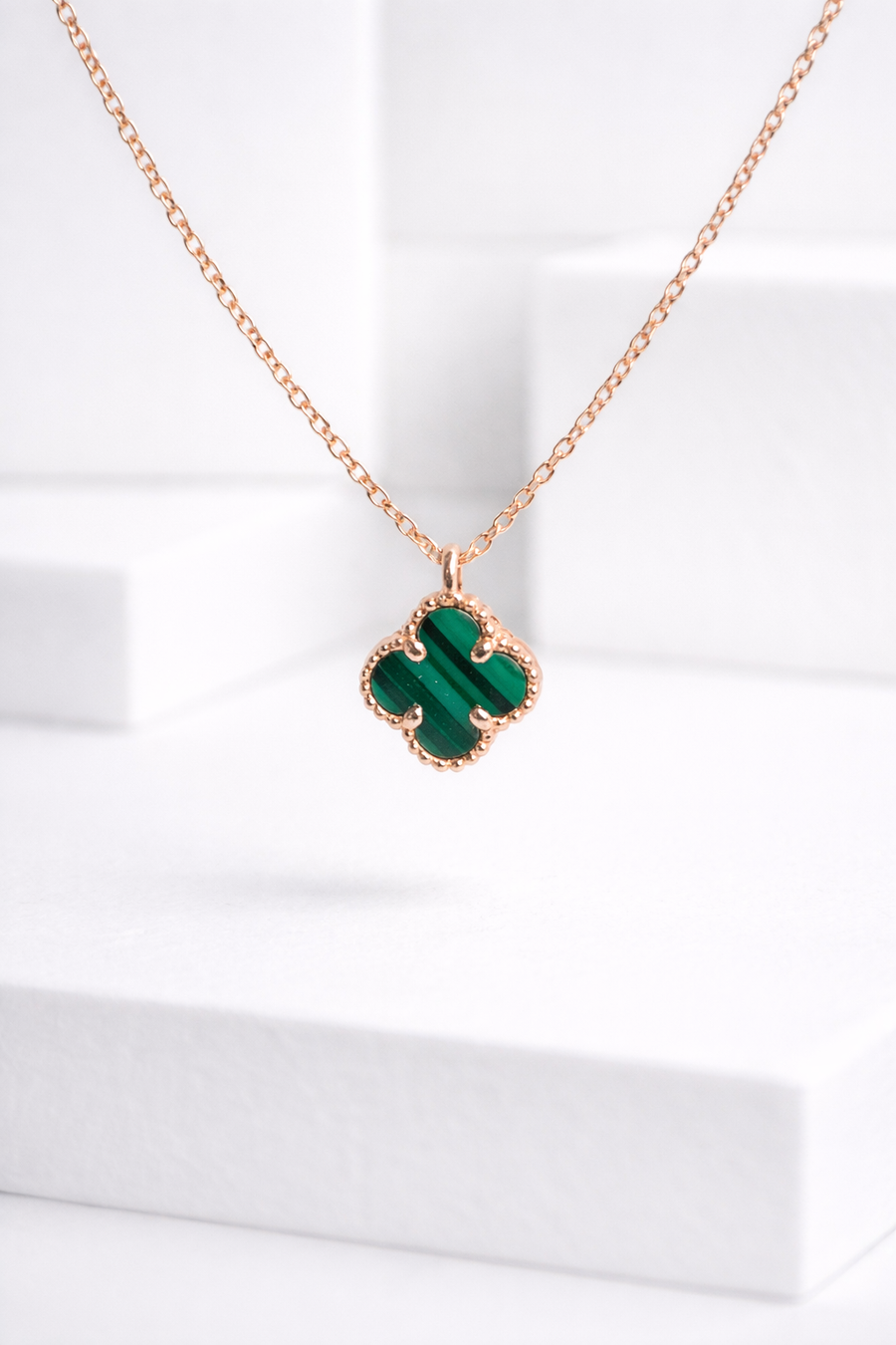 The Verde Clover Necklace features a deep green clover charm framed in polished sterling silver — subtle enough for everyday wear, striking enough to stand on its own. Designed to sit close to the skin and layer effortlessly, this piece adds a calm, confident accent to any look.
