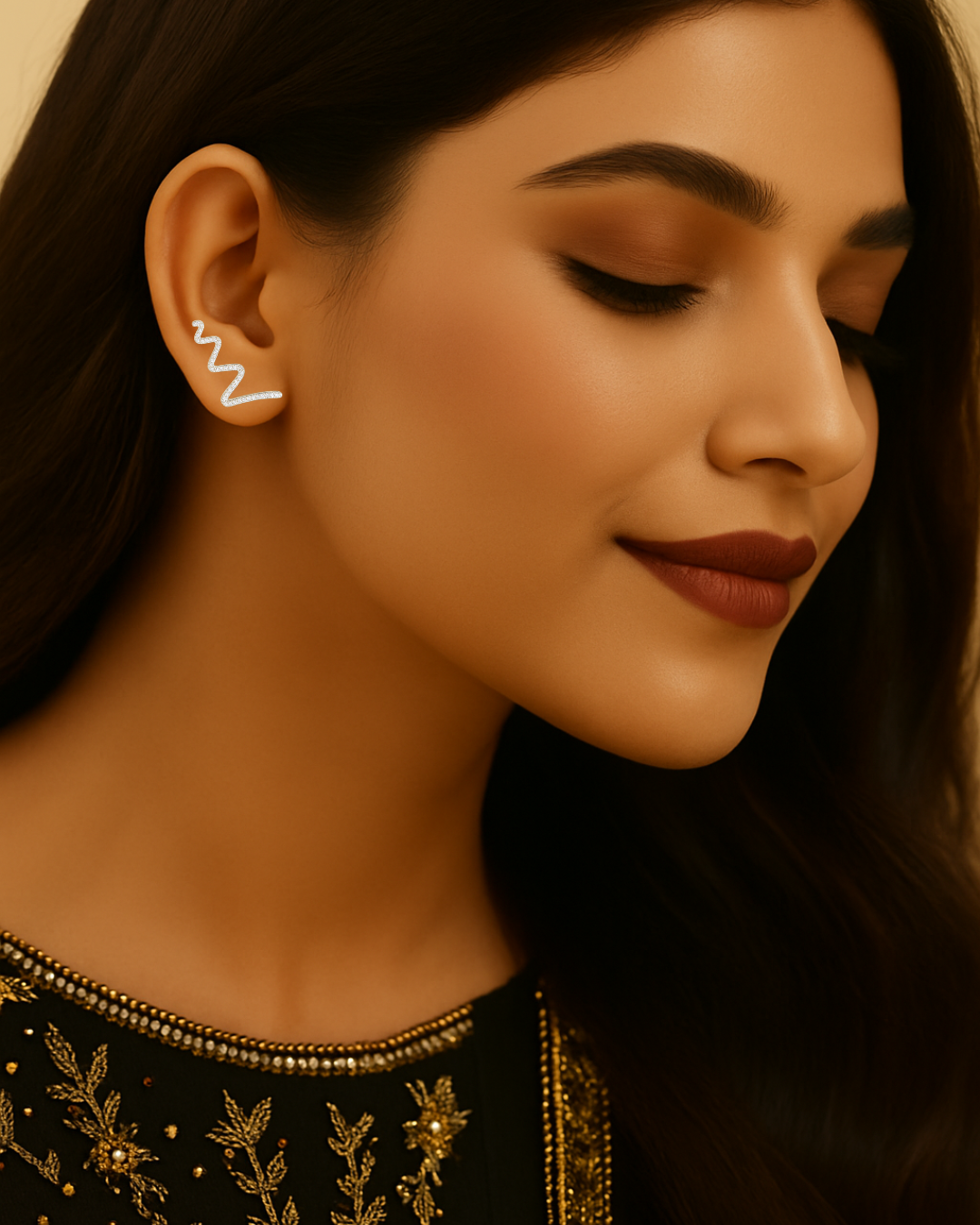 Turn heads with these bold wave-inspired ear cuffs. Crafted in sleek 925 sterling silver and fully encrusted with shimmering pavé-set cubic zirconia, their fluid zigzag silhouette adds an instant statement of elegance and edge. No piercing required — just slip them on for an effortlessly chic look.